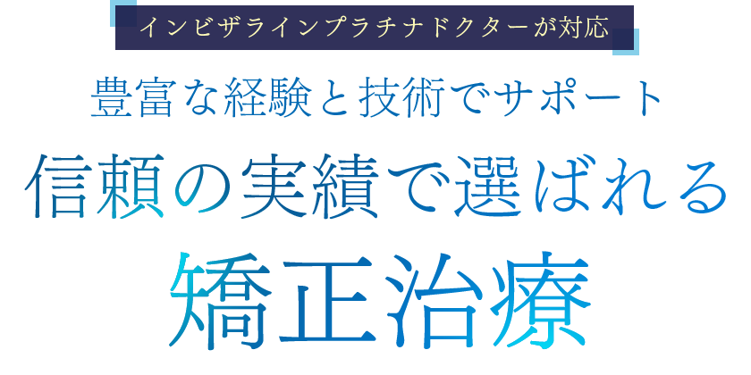 インビザラインの治療実績が累計500症例以上の歯科医は、「インビザラインプラチナドクター」として認定されます。当院院長は、このインビザラインプラチナドクターに認定されているため、より専門的で精度の高い矯正治療をお届けすることができます。これまでにさまざまな症例を担当しているため、豊富な知識と経験があります。他院でお断りされてしまった症例でも、ぜひ一度ご相談ください。