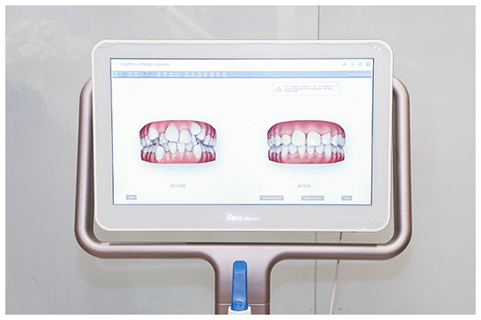 当院では、口腔内スキャナーや歯科用CTなどの精密機器を使用して、患者さまの歯並びや口腔内の状況を正確に把握し、矯正治療を開始する前に緻密なシミュレーションを行っております。このシミュレーション結果をもとに、歯の一つひとつの動かしかたや、後戻りをできるだけ抑えるような治療の進めかたを計画しご提案いたします。